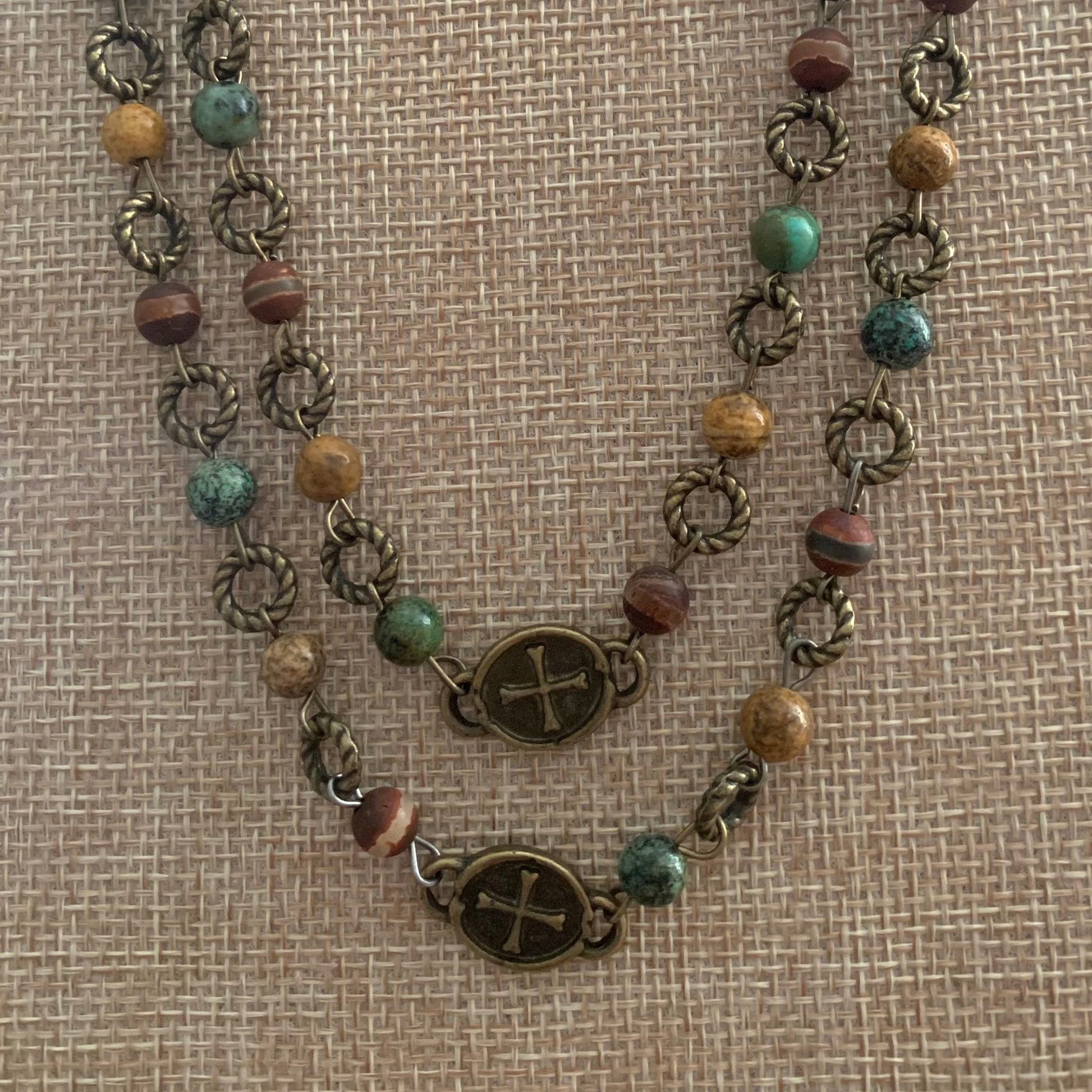 This multi-colored, double layered necklace is a perfect addition to any outfit!
