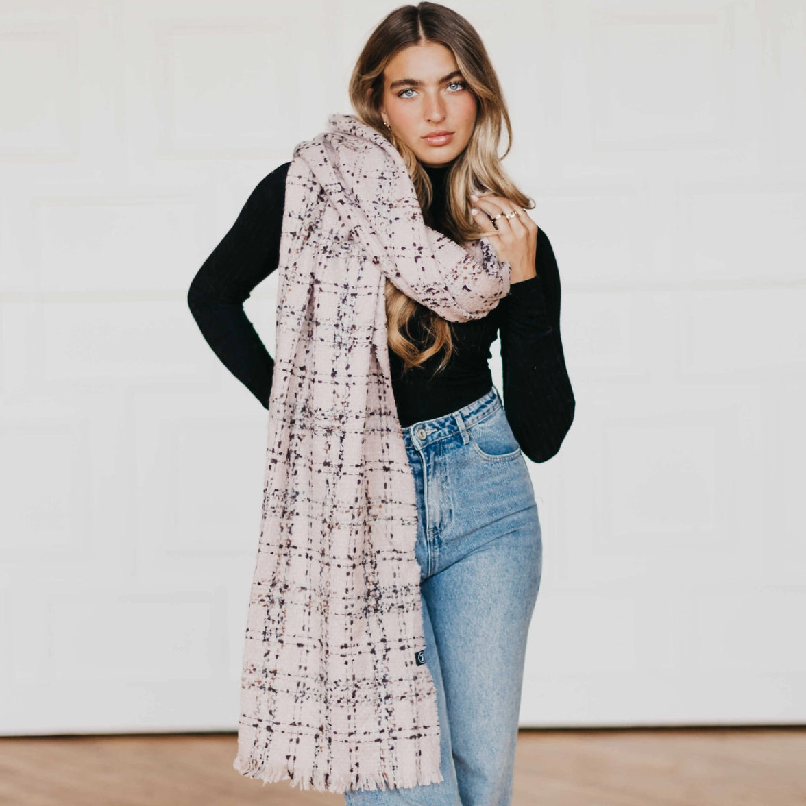 The Lafayette Scarf is a cozy, on-trend scarf that will complete your outfit, keeping you both stylish and warm. Ultra-soft acrylic material.