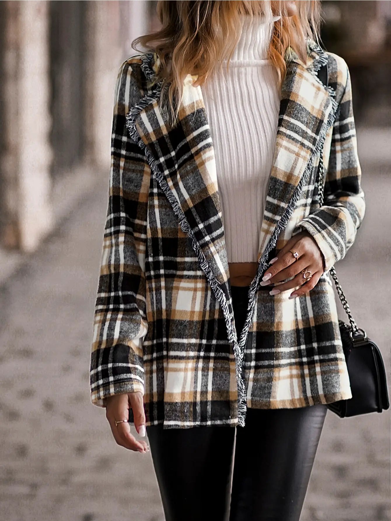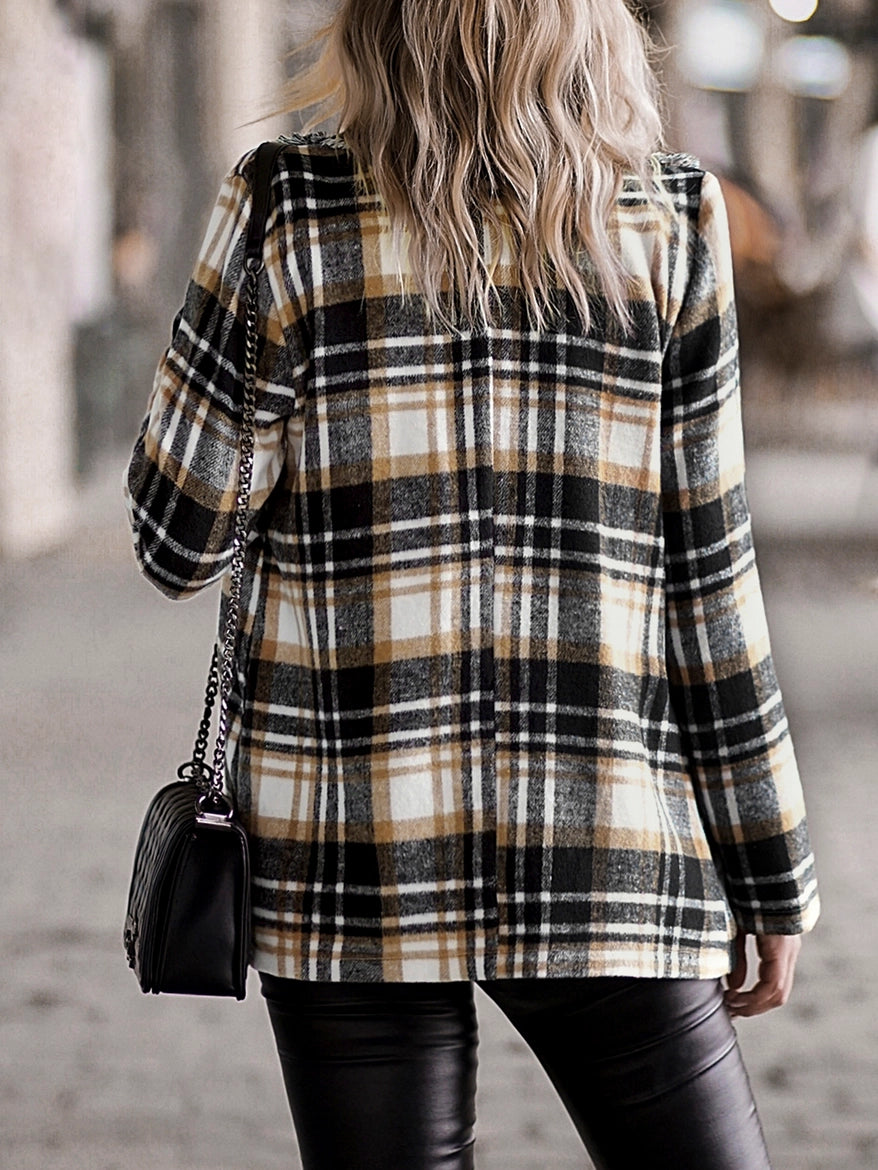 Plaid Shacket Blazer w/Fringe