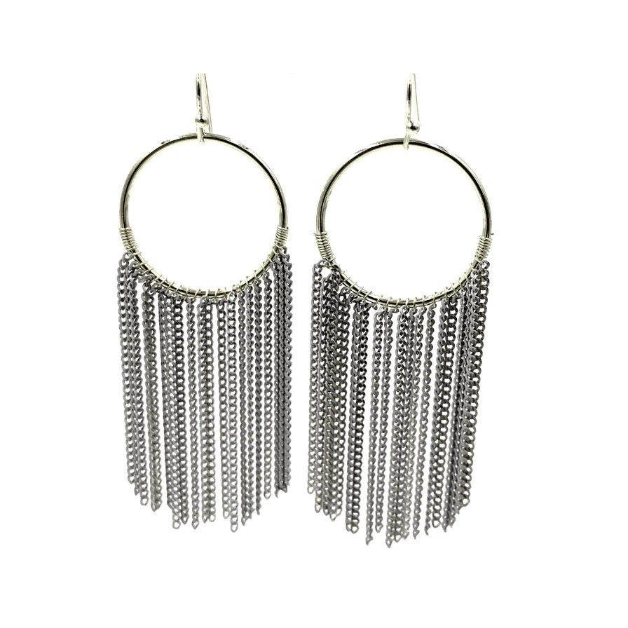 Mixed metal magic! Gold hoop with pewter chain danglers. Fun, flirty and light as air.